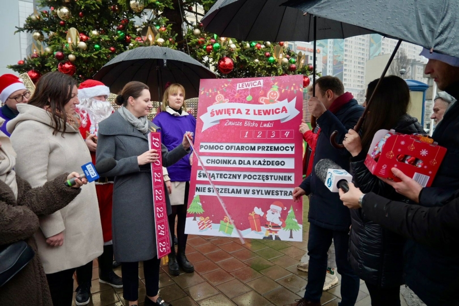 "Pogoda nie jest bardzo świąteczna, ale nastrój świąteczny już odczuwamy jak najbardziej, w związku z tym również przygotowaliśmy taką niespodziankę, że przed świętami, proszę śledzić nasze social media, będziemy rozdawać bezpłatne choinki dla mieszkańców. No i oczywiście przez cały ten świąteczny okres nie zapomnimy o organizacjach pożytku publicznego, z którymi również współpracujemy i razem z nimi próbujemy pomagać różnym grupom społecznym" - oświadczyła Elżbieta Żuraw, Wiceprzewodnicząca Nowej Lewicy w województwie łódzkim.